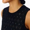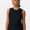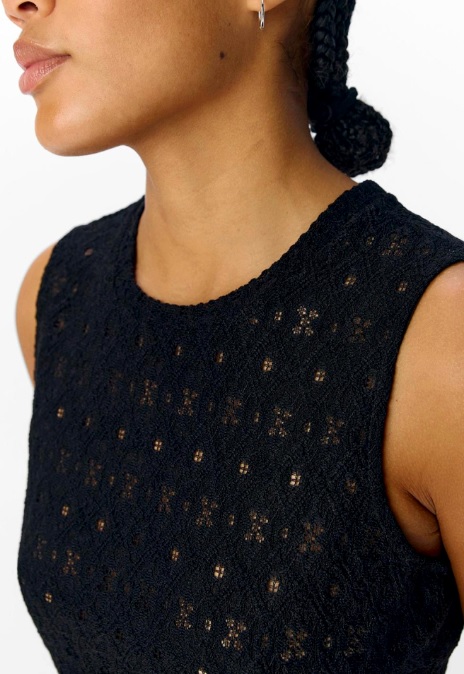 Camiseta de mujer sin mangas con cuello redondo y corte regular, confeccionada en tejido ligero y suave de poliéster reciclado y elastano. Ideal para usar sola o combinada con capas.
